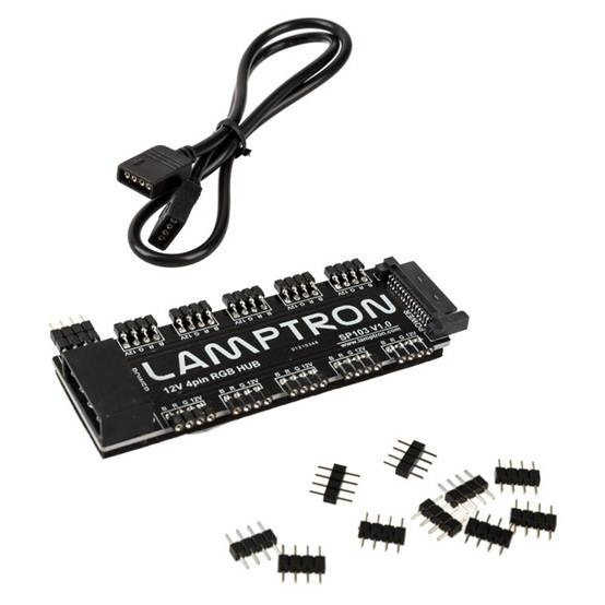 Вентиляторы, ленты, моноблоки и многое другое сегодня оснащены RGB-светодиодной подсветкой, которая может превратить внутреннее пространство стильных корпусов в настоящее световое шоу. Но что делать, если на материнской плате недостаточно слотов для них? У Lamptron есть решение: хаб SP103 с десятью слотами (12 В, GRB) для 600 RGB-светодиодов. Концентратор подключается к материнской плате с помощью прилагаемого кабеля. Он управляет световым потоком. Питание обеспечивается через разъёмы SATA и Molex.