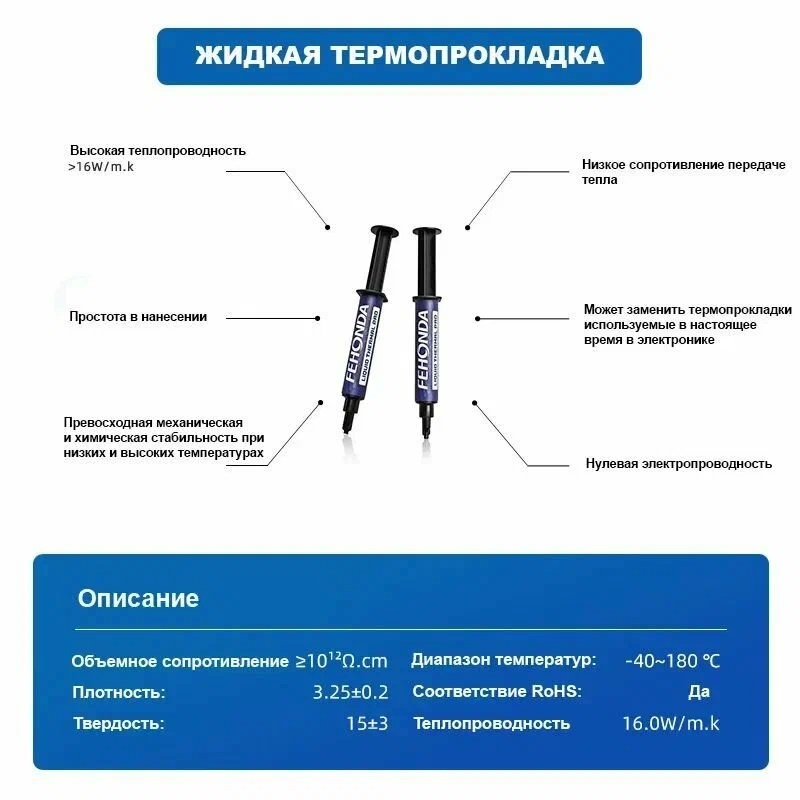 Термопрокладка Fehonda Жидкая LTP65 Liquid Thermal Pad 16W, 12 грамм, 16 Вт(м·K), -40/180C покупают вместе с :
