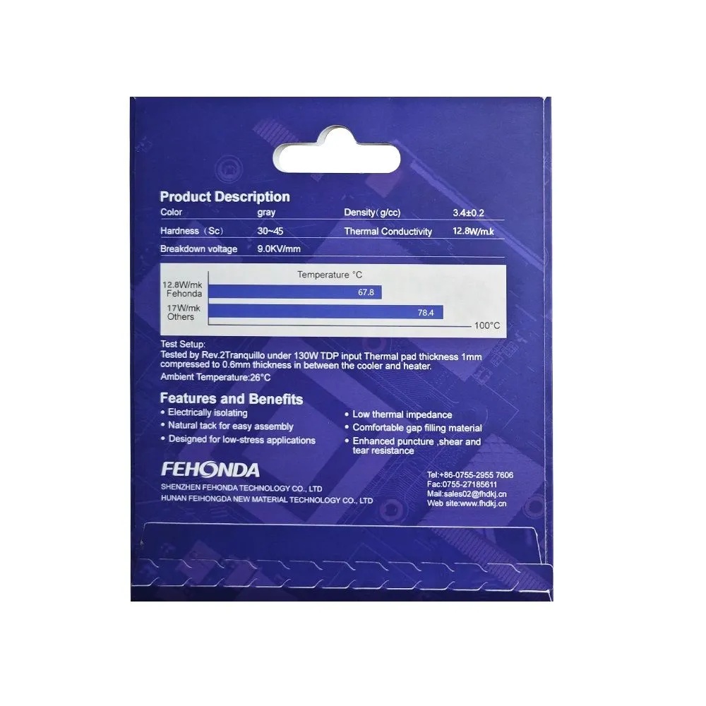 Термопрокладка Fehonda 100x100x0.5мм, 12.8 Вт/(м·K) FHND-12.8W-100X100-0.5