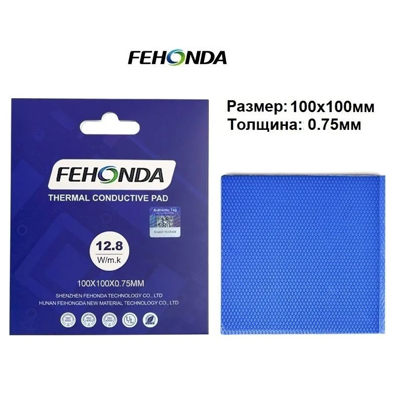 Термопрокладка Fehonda 100x100x0.75мм, 12.8 Вт/(м·K) FHND-12.8W-100X100-0.75