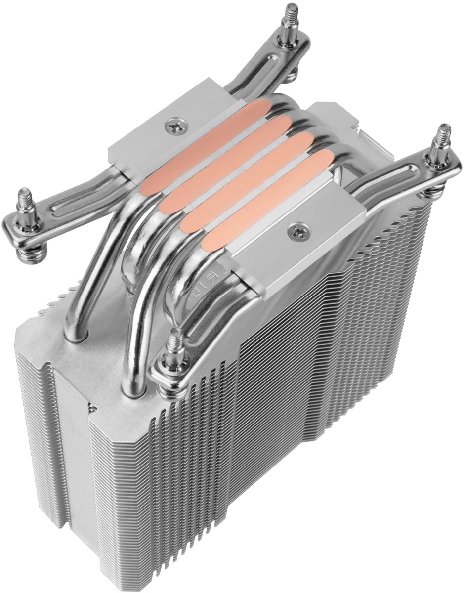 Сердцем системы охлаждения является массивный алюминиевый радиатор, пронизанный четырьмя тепловыми трубками диаметром 6 мм. Эти трубки, изготовленные по передовой технологии, обеспечивают мгновенный отвод тепла от процессора. Они находятся в прямом контакте с крышкой процессора через идеально отполированное медное основание