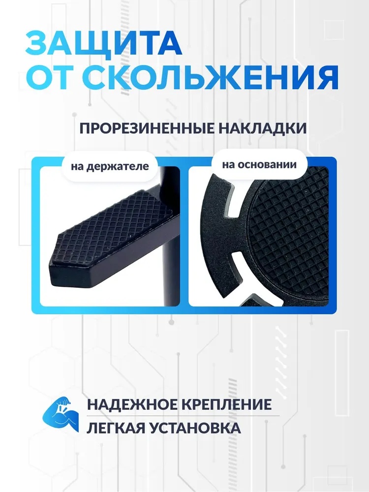 Прорезиненные накладкиНа основании и самом держателе есть прорезиненные накладки против скольжения