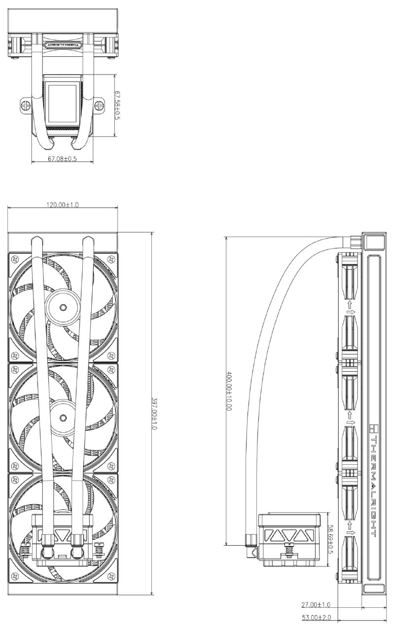 Размеры радиатора: L397 мм x W120 мм x H27 мм