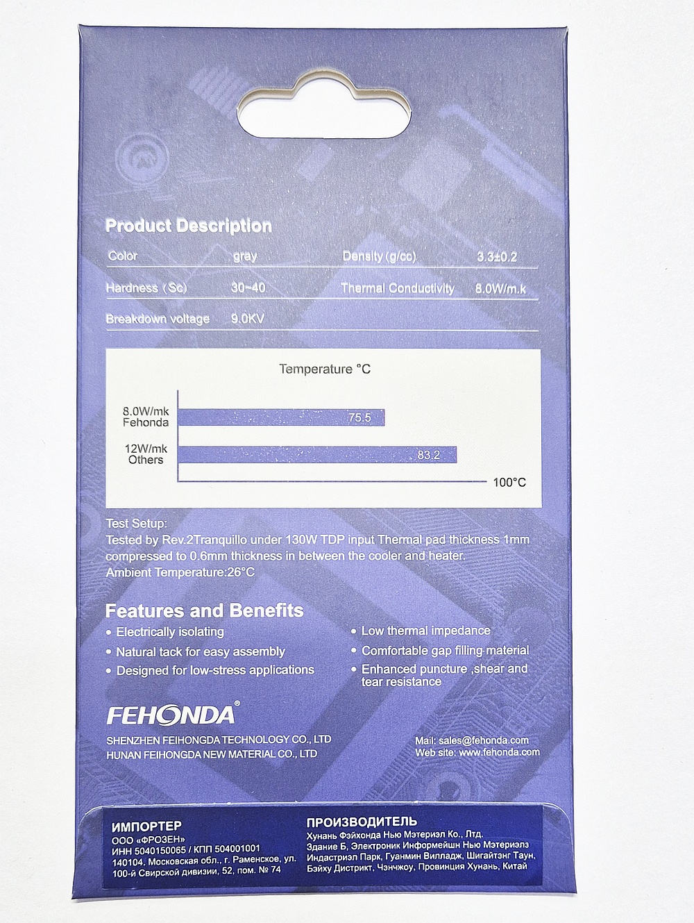Диапазон рабочих температур от минус 40 до плюс 180 градусов Цельсия делает эту термопрокладку универсальным решением для устройств, работающих в самых разных, в том числе и экстремальных, условиях. Она не теряет своих эластичных свойств и эффективности ни в сильный мороз, ни под воздействием высоких температур, неизбежных внутри корпуса активно работающего прибора