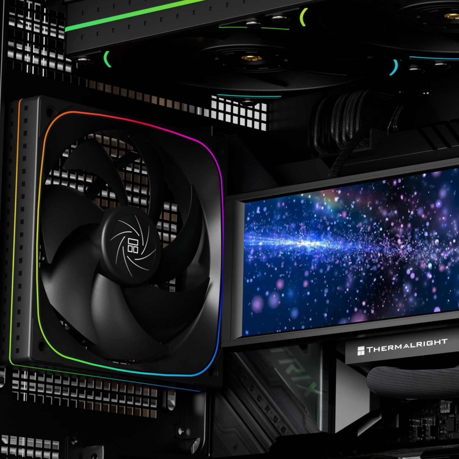 Гидродинамический подшипник S-FDB гасит вибрации и повышает ресурс. 4-pin PWM автоматически подстраивает скорость под температуру системы, а 3-pin ARGB (5V) синхронизируется с подсветкой материнской платы или контроллера. Черное исполнение впишется в любой темный билд.