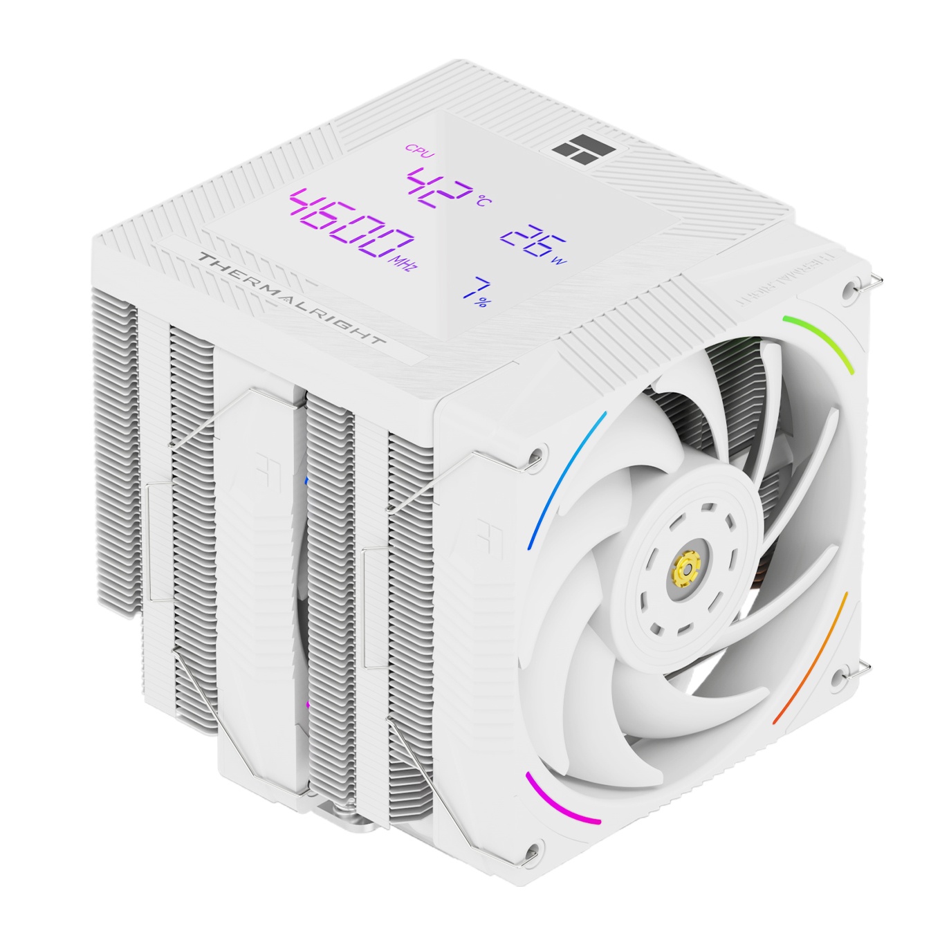 Thermalright Phantom Spirit 120 Digital SNOW — двухбашенный кулер для процессора с эффективным воздушным охлаждением, ARGB-подсветкой и цифровым дисплеем. Конструкция с двумя радиаторными башнями и 7 тепловыми трубками обеспечивает стабильный отвод тепла при высокой нагрузке, что делает кулер подходящим для игровых ПК и производительных систем.