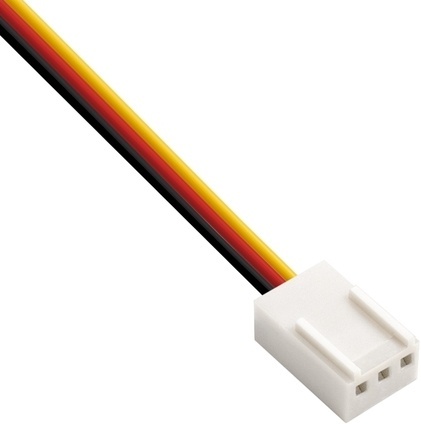 В основе лежит надёжный подшипник скольжения с заявленным ресурсом 30 000 часов при 25°C. Вентилятор рассчитан на напряжение 12 В и потребляет всего 0,16 А. Трёхконтактный разъём 3-pin 2510 подключается напрямую к материнской плате, а длина кабеля 300 мм позволяет удобно разместить его в любом отсеке.