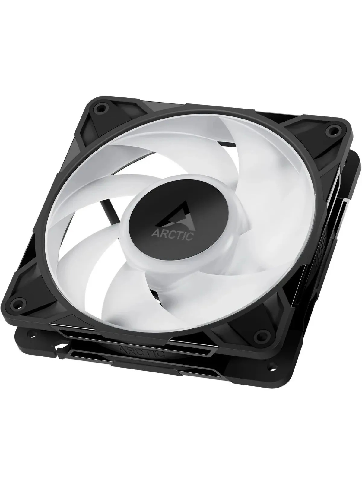 ARCTIC P12 Pro A-RGB LN — это 120?миллиметровый корпусной вентилятор, обеспечивающий мощное и при этом очень тихое охлаждение. Уровень шума не превышает 20 дБ(А) даже на максимальных оборотах 2000 об/мин, что достигается за счёт синусоидальной магнетизации двигателя, сводящей вибрации к минимуму. При этом вентилятор создаёт статическое давление 6.9 мм H?O и воздушный поток 49 CFM, что делает его отличным выбором для установки на радиаторы жидкостного охлаждения. Надёжный гидродинамический подшипник (FDB) обеспечивает долговечность и плавность хода.